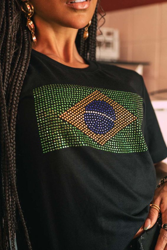 Coleção Alma Brasileira -T-shirt Bandeira Strass Preta quantidade