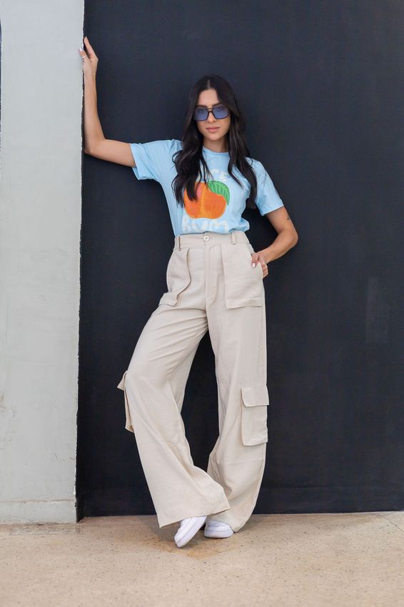 O tom de azul traz leveza ao visual com uma estampa atual e clean!